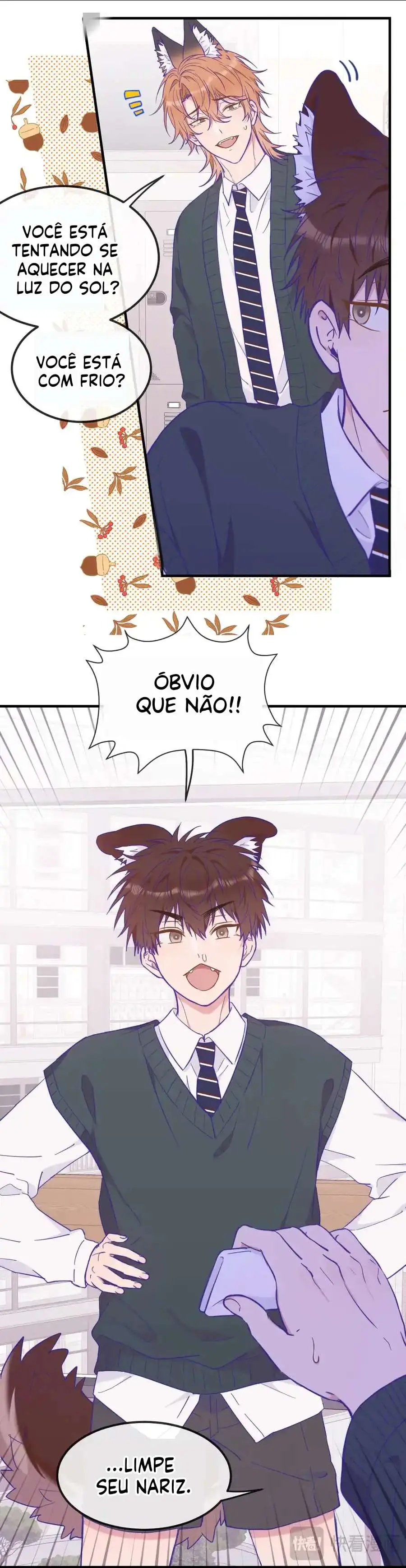 O cachorrinho é claramente um onívoro, então por que ele tem que fingir ser um carnívoro? Em seu primeiro dia de transferência para uma nova escola, seu segredo foi descoberto por sua colega raposa. Então começa sua vida vivendo sob “ameaça”, mas depois de passar mais tempo com ele, a raposa não é realmente tão horrível…?