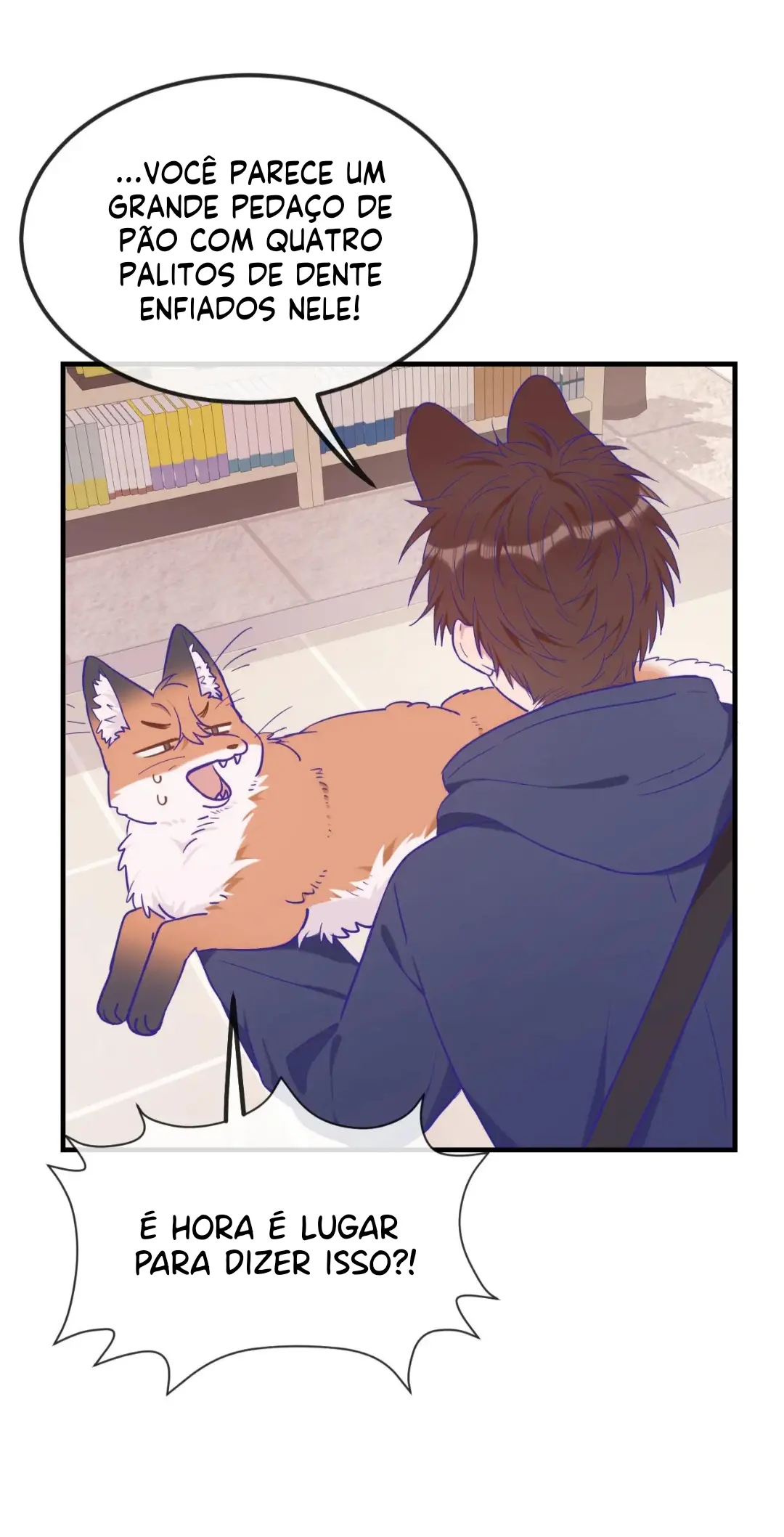 O cachorrinho é claramente um onívoro, então por que ele tem que fingir ser um carnívoro? Em seu primeiro dia de transferência para uma nova escola, seu segredo foi descoberto por sua colega raposa. Então começa sua vida vivendo sob “ameaça”, mas depois de passar mais tempo com ele, a raposa não é realmente tão horrível…?