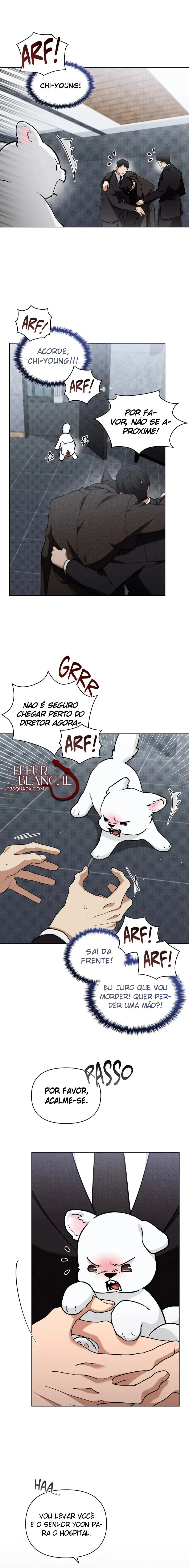 Ler Don’t Mess With the Puppy! grátis em português! Depois de ser abandonado pelos pais quando jovem, Gyun Heesung cresceu em um cassino. Por causa de seu hyung, que o acolheu, ele não hesita em se colocar em perigo. No entanto, após uma emboscada, ele se vê ferido e transformado novamente em sua forma de cachorro. E ao acordar… “O que há com esse pano sujo de cachorro?” “Deixe ir – seu maldito bastardo!” Gyun Heesung de repente se tornou o cão de estimação de um lobo predador. Embora ele agora viva cheio de cuidado e carinho sinceros, a coabitação deles é um tanto perturbadora. “Cachorro… Acho que não vou te comer.” “C-bastardo louco.” Uma história sobre a coabitação entre um cachorrinho que quer fugir de um lobo carnívoro e um lobo que está completamente apaixonado por esse cachorro.