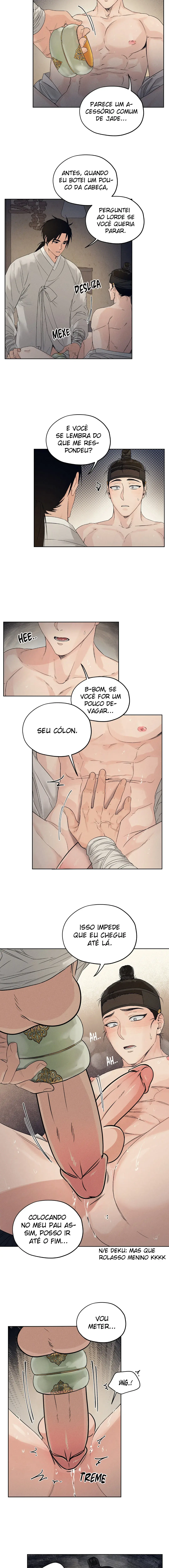 Ler o Manhwa Joseon Instrument Workshop em português Grátis no Porta Yaoi Hyowon, um yangban (homem nobre) que gosta tanto de cores que joga todas as noites. Ele é secretamente apresentado à famosa Oficina Eumgu (loja *adult) que é secretamente famosa entre os aristocratas por seu amigo íntimo Nam Soo-in. O dono da oficina, Shin-woo, que veio visitá-lo, é muito brusco, ao contrário das esplêndidas/colores das frases e notas musicais que ele faz. Hyowon quer experimentá-lo com Shinwoo, então ele se propõe a testar a eficácia do emgu (frases musicais/brinquedos) em seu próprio corpo. Em um desejo de experimentá-lo. Hyowon tenta dormir com outro homem que não Shin-woo, mas não consegue sentir o mesmo prazer que sentiu nas mãos de Shinwoo. No final, com a sugestão persistente de Hyowon, Shin-Woo testa o tom e o tom com Hyowon. Hyowon espera que ele seja capaz de dormir com Shinwoo quando o teste de música continuar.