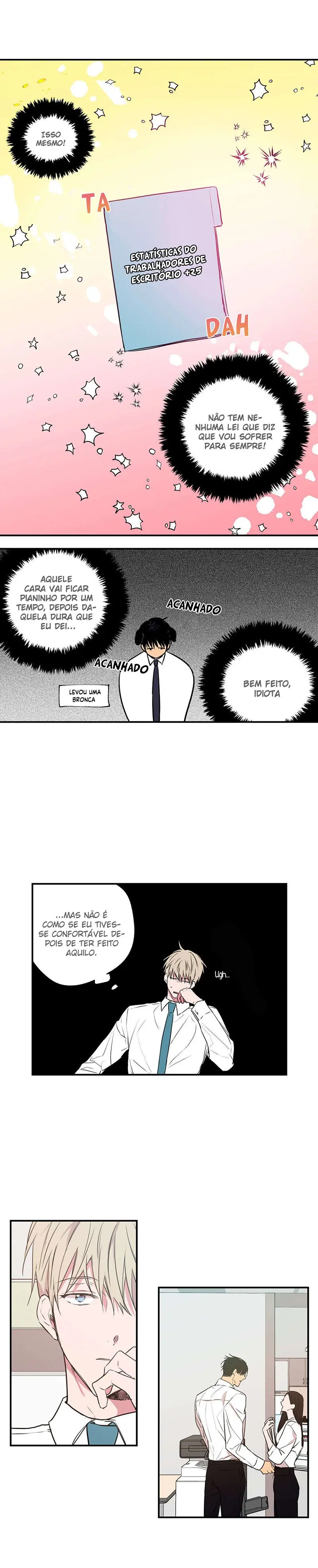Ler o Manhwa No Love Zone em Português grátis no Portal Yaoi Lee Eun-gyeom, um funcionário novato com um ano de experiência na empresa. Ele é muito educado, cheio de aegyo (expressões fofas) e suas relações interpessoais são muito harmoniosas. No entanto, talvez devido à sua natureza muito alegre, ele não tem sorte no amor. Até que um dia, o supervisor que é seu tipo ideal aparece diante de Eun-gyeom. No entanto… Maldito supervisor. Sempre que tem a chance, ele vira a vida das pessoas de cabeça para baixo.
