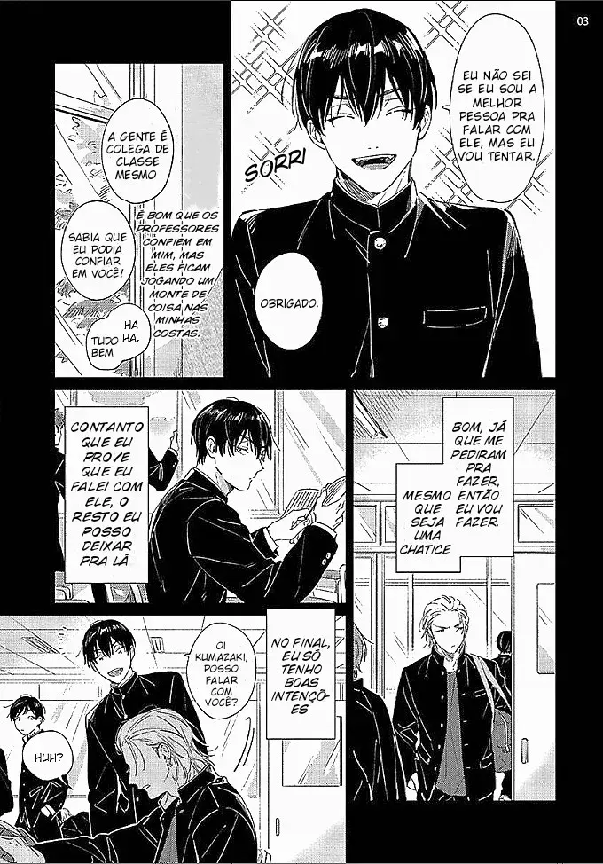 O presidente do conselho estudantil, Terano, é confiante e inteligente. Por outro lado, o bonito, mas assustador, valentão Kumazaki tem sido reprovado na escola nos últimos anos. Um dia, um amigo da escola pega Terano mandando uma mensagem para alguém. Poderia ser uma nova namorada? Porém, Terano permanece calado sobre o assunto… Ninguém poderia imaginar que o rebelde Kumazaki é na verdade bastante tímido e está completamente enrolado no dedo de Terano…
